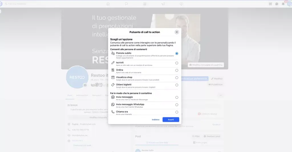 tutorial di come aggiungere restoo sul social Facebook e scoprire i vantaggi del pulsante di prenotazione di facebook